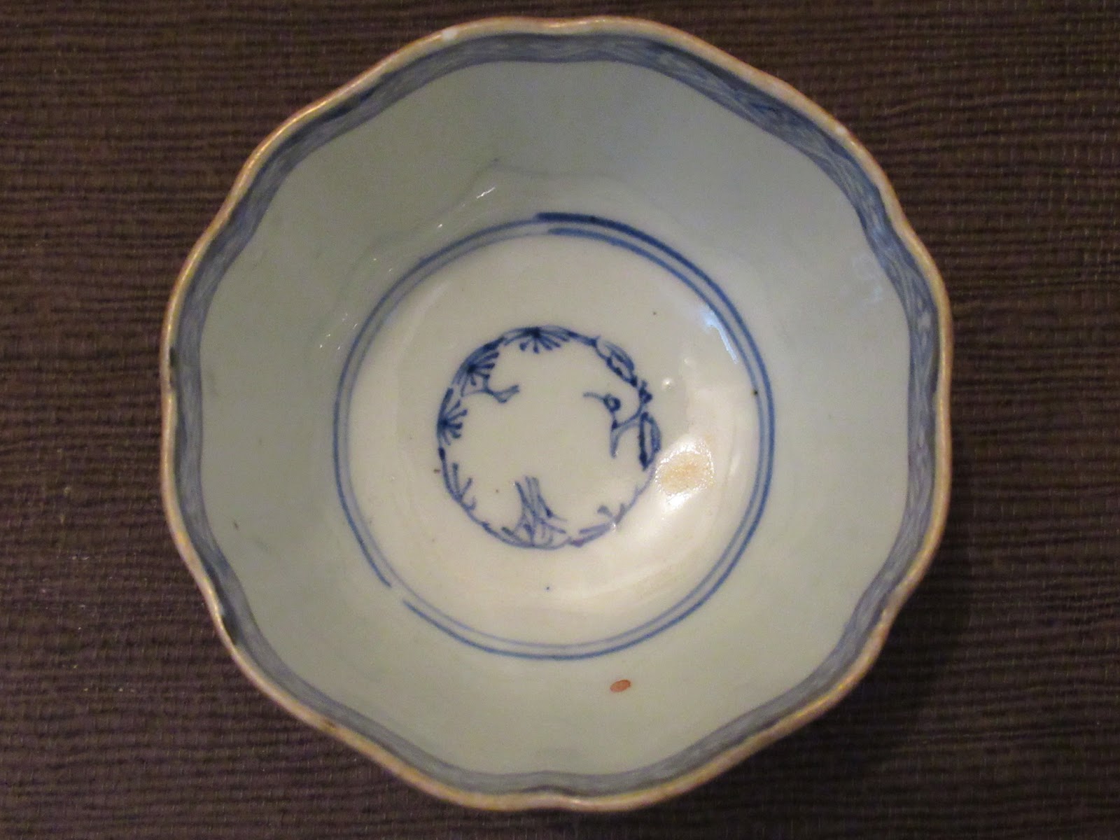 口縁部は輪線でさっぱりと、見込みは昆虫文です。