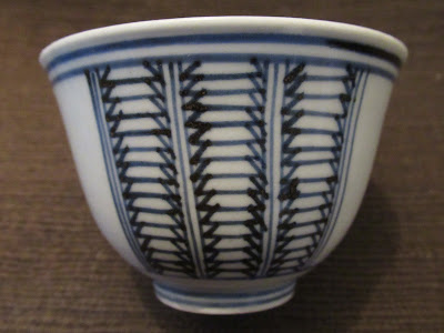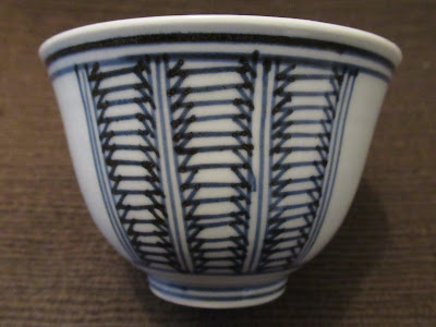 染付三方に幾何学文向付