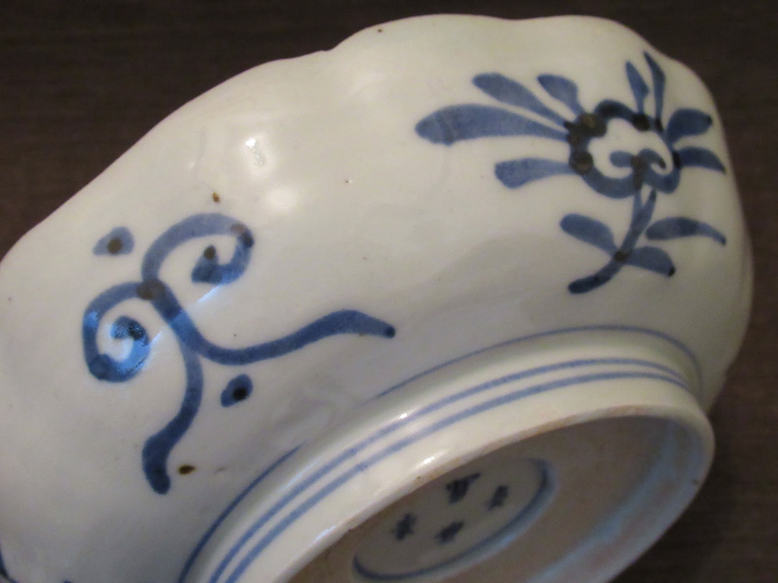 輪花縁の口縁には鉄釉施し、文様引き締めます。
