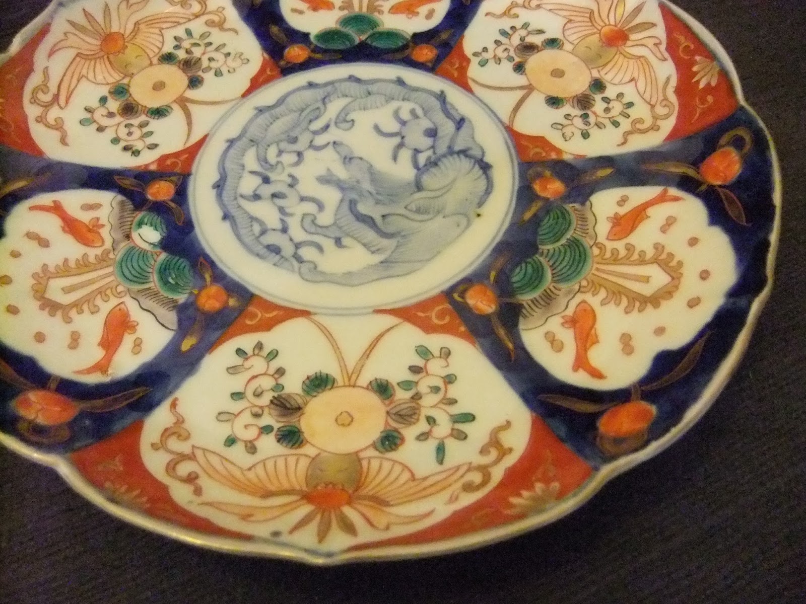 色絵三方に鳳凰と双魚図通り物(明治前期)