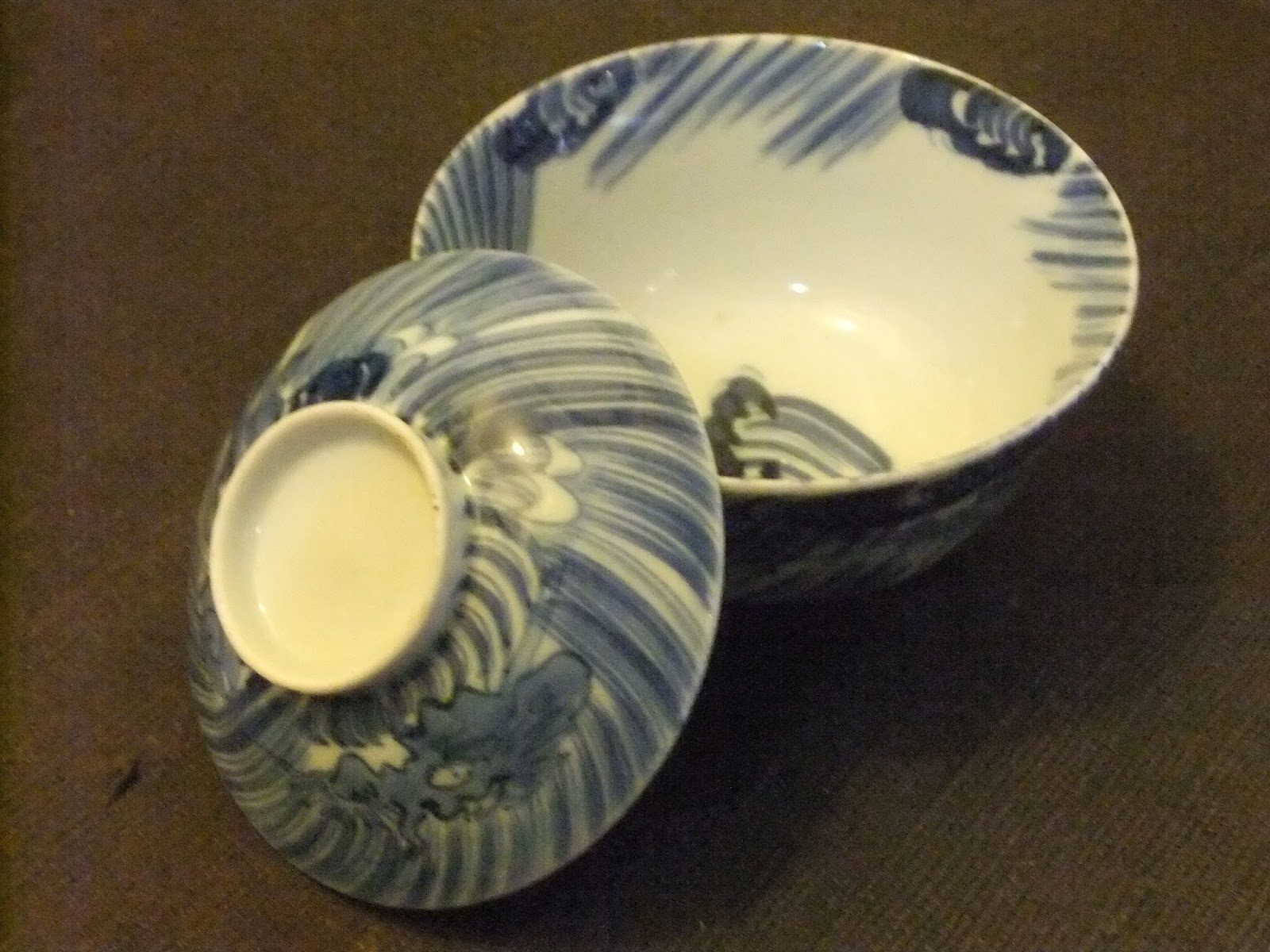 裏側は染付による伸びやかな絵付けが施され、