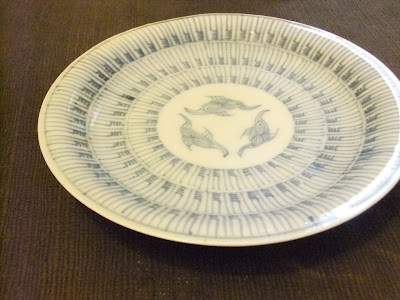 淡い呉須調が心地良く広がり、縁文様を埋めるのは梵字文。