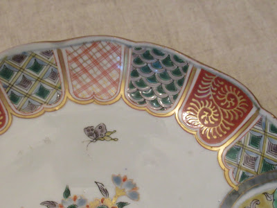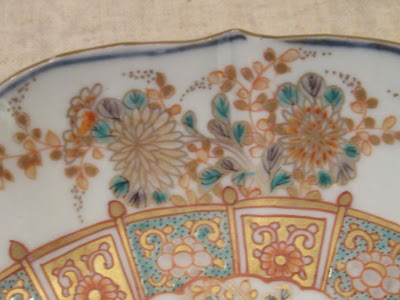 白く残された割絵の中には菊の花が唐草と共に装飾されています。