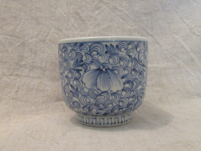 高台は白無地で、側面には簡略化された芙蓉手のような文様。