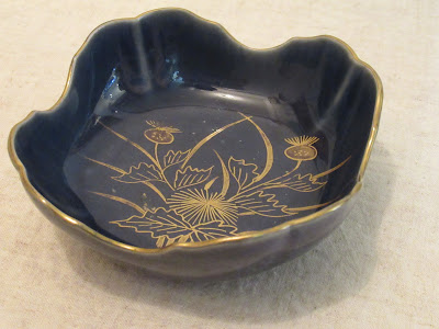 瑠璃釉金彩薊図角なます皿