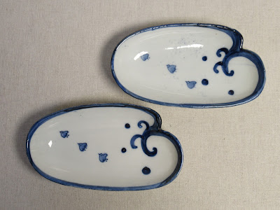 染付波に千鳥図舟形皿